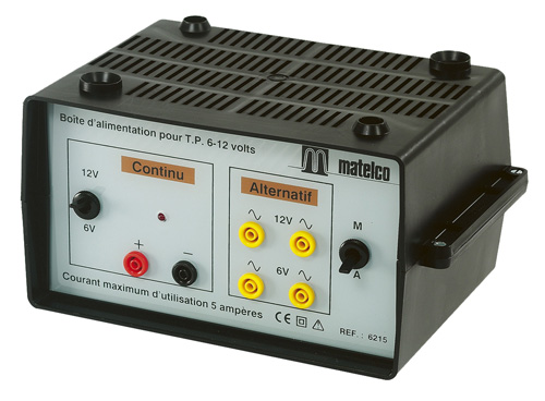 Tensions délivrées: 6 ou 12 V fixe en alternatif ou continu.