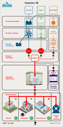 Centrale Autonome Tri énergie: Smart Grid.Cette centrale hydroélectrique évolutive de type station de transfert d’uénergie par turbinage-pompage est une homothétie des barrages type Grand’uMaison (38) ou Lac Noir (88).