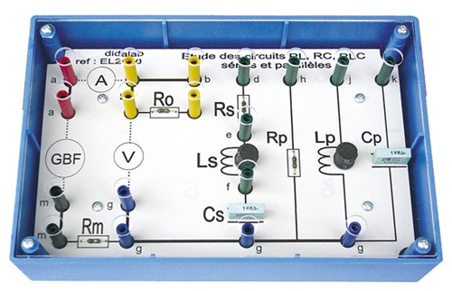 Module compact permettant d’étudier le circuit RLC série et parallèle avec un minimum de branchements.