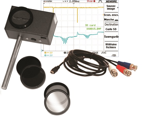 By placing the Caliens camera at the end of your optical bench, you ensure that your light signal reaches the CCD sensor array. The set of filters guarantees the signal is displayed unsaturated. The signal is displayed in real time. The software allows simulation of the signal obtained at a theoretical curve. You can simulate the type of slit and size, and the wavelength with which you work. The software displays the theoretical curve corresponding to these characteristics, which can be compared to the actual signal obtained. You can also use the BNC cable and an oscilloscope to compare the “analog raw signal” and the “digital signal” on the software.