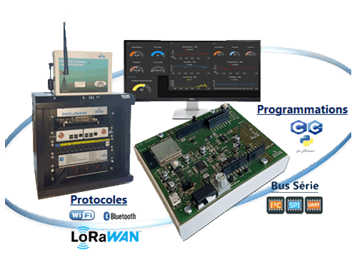 Temperature (embedded), Luminosity, Hygrometry, Accelerometer,…