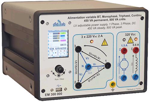 LV power supply specially designed to carry out practical works on any power electronics bridge (1-/3-phase rectifiers, choppers, 1-/3-phase inverter).