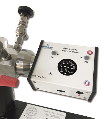 Precision apparatus designed to study the compressibility and liquefaction of a gas, here Sulphur Hexafluoride (SF6), and allowing to easily reach its critical point in complete safety.
