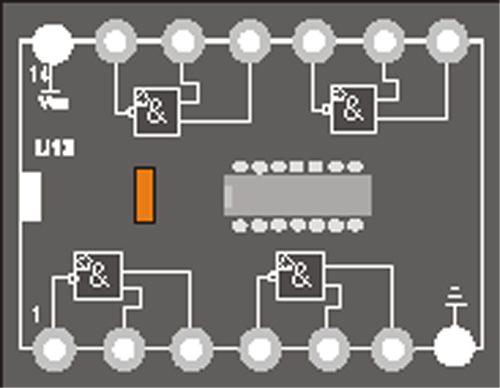 ▪ 4 NAND with 2 inputs, open collector & 4 pull-up resistors.