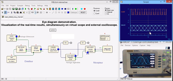 ▪ Embedded real-time instrumentation (text terminal, 8-channel oscilloscope (with XY mode, constellation), spectrum analyzer, recorder, sine/triangle/IQ generator…).