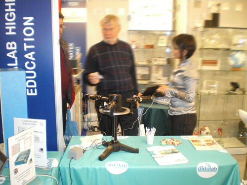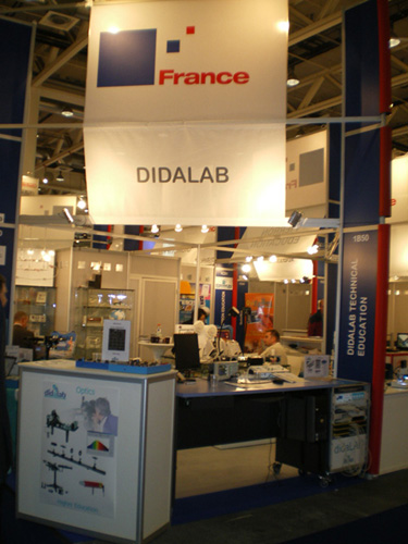 Beaucoup de visiteurs étaient originaires du Moyen Orient, du Maghreb et de l’Asie du Sud-Est. Au sein du Pavillon Français, DIDALAB présentait des produits représentatifs de ses différentes spécialités : – un spéctrogoniomètre à lunette autocollimatrice en Optique – une maquette d’asservissement de vitesse et de position en Automatique – un monte-charge avec commande Grafcet en Automatisme – une version démo du didaLAN, laboratoire d’étude des réseaux Ethernet, en Informatique et Réseaux