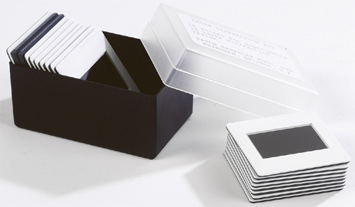 • 6 diapositives de 1 à 6 fentes, toutes de même dimension à savoir 0,06 mm d’épaisseur