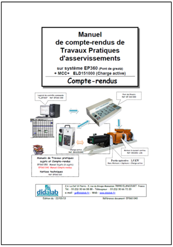 Manuels de TP professeur et élèves, régulation de vitesse sur moteur CC 1.5 Kw, avec éléments de réponse 6 TP, 57 pages.