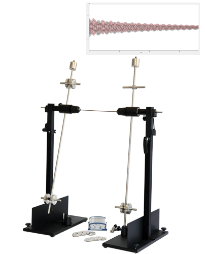 En associant 2 pendules pesant de même génération, l’un en face de l’autre, il est facile de créer un pendule double. Celui-ci permet l’étude des pendules couplés et sympathiques, avec fil de torsion ou ressort.