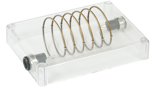 Le socle doit être saupoudré de limaille de fer (non fournie) afin de visualiser les spectres magnétiques des circuits types.