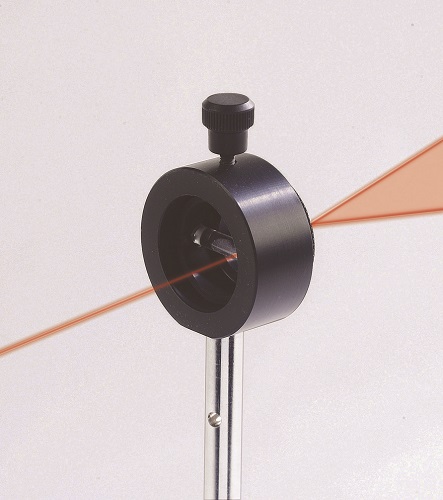 Dispositif optique permettant de transformer un faisceau laser incident en une ligne orientable à 360• grâce à un cylindre en verre. Ensemble monté sur une tige de diamètre 10 mm.