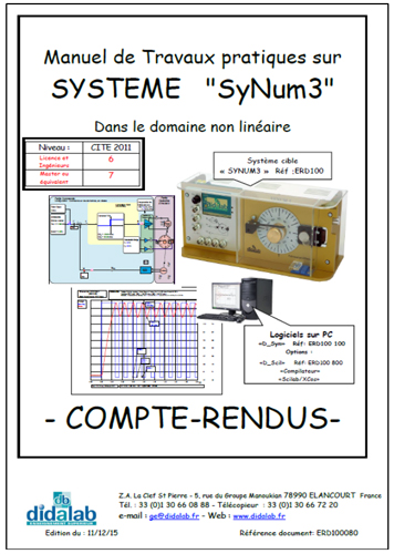 Manuel de travaux Pratiques (sujets) Systèmes asservis dans le domaine non linéaire (Réf : ERD100080)
