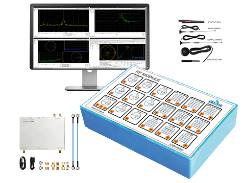 Le Pack Radio Fréquence Passif est composé de LibreVNA, analyseur de réseau vectoriel, d’un module RF avec des circuits R, RL, RLC, des adaptateurs de ligne, des atténuateurs et des filtres et d’unn kit antennes de (1 MHz à 6 GHz).