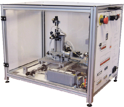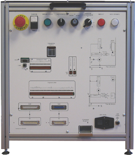 Il est conçu pour démontrer les principes de commande d’un automatisme industriel par PC (avec interpréteur Grafcet) ou par API (par connecteurs DB25 et DB37 ou en câblage des entrées sorties par bornier type Zélio, TSX?)