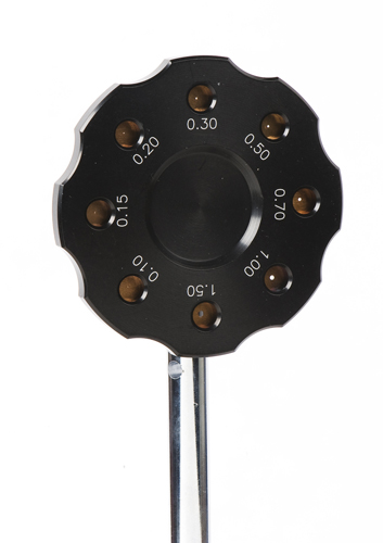 8 trous de diffraction (de 0.1 mmm à 1.5 mm) montés sur une monture à barillet